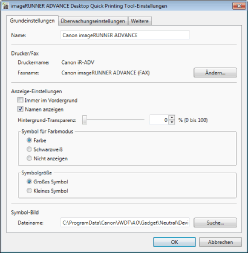 Hiermit können Sie die Bilddatei auswählen, die als Druckersymbol des Quick Printing Tools verwendet wird.