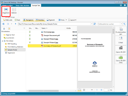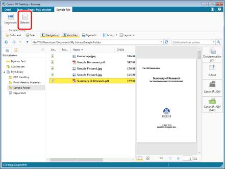Wenn Sie das Kontrollkästchen [Ungelesene Dokumente nach dem Anzeigen automatisch als gelesen markieren] aktivieren, werden ungelesene Dokumente automatisch zu gelesenen Dokumenten, wenn Sie einen Vorgang mit ihnen ausführen (öffnen, drucken, Faxen, E-Mail erstellen usw.)