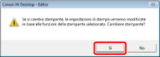Se viene specificata una stampante Canon, Desktop Editor ne recupera le informazioni e configura solo gli elementi da questa supportati disponibili.
