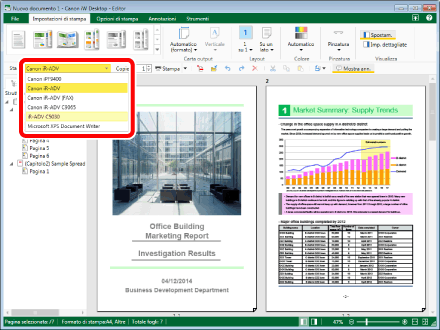 Fare clic su [Stam.] sulla barra degli strumenti e selezionare dall'elenco a discesa la periferica multifunzione da usare per la stampa. È possibile configurare le funzioni della periferica multifunzione selezionata.