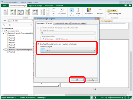 Selezionare la casella di controllo [Specifica il layout di pagina per il capitolo selezionato] nella finestra di dialogo visualizzare, poi selezionare [1 su 1] in [Layout di pagina] e fare clic su [OK].