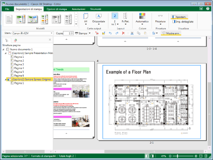 Salvando un documento in formato IWB, è possibile salvare insieme al documento anche le impostazioni di stampa, come il layout, specificate in Desktop Editor.