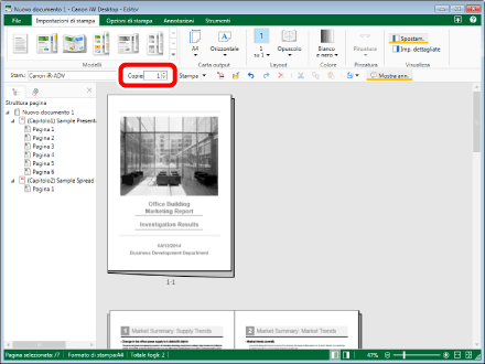 Immettere il numero di copie da stampare in [Copie] sulla barra degli strumenti. È possibile specificare il numero di copie immettendo un numero oppure facendo clic su