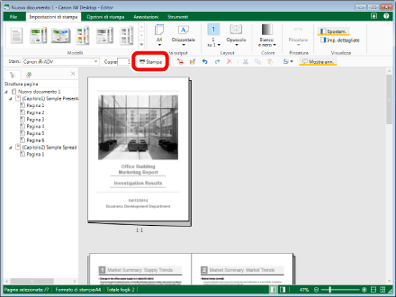 Configurare le impostazioni di stampa durante l'anteprima dei risultati di stampa in Desktop Editor. È possibile controllare i risultati di stampa prima di stampare.
