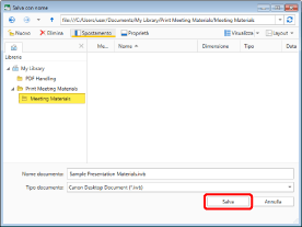 Selezionare la cartella "Meeting Materials", controllare che il tipo di documento sia [Canon Desktop Document] e fare clic su [Salva].