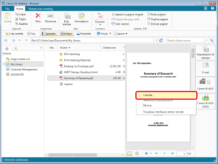 Fare clic con il pulsante destro del mouse sul pulsante output stampante nella barra di output e selezionare [Cambia].