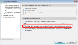 [Configuración del sistema] > [Browser] > [Editar/operación de documentos] > [Copiar el valor de las entradas con la configuración de propiedades que coinciden]