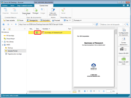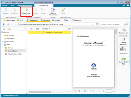 Cuando seleccione una Biblioteca de Document Server o una Biblioteca de SharePoint Server con la cual no se haya establecido conexión, la biblioteca debe estar conectada. Para obtener más información sobre cómo conectarse, consulte: