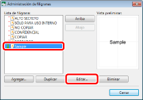 Si se están ejecutando varias instancias de Desktop Editor y usted registra, duplica, edita o elimina una filigrana, el cambio solo se refleja en la lista de filigranas de la instancia de Desktop Editor utilizada para llevar a cabo la operación en cuestión. Si cierra todas las instancias de Desktop Editor que se estén ejecutando, la configuración se reflejará la próxima vez que inicie Desktop Editor.