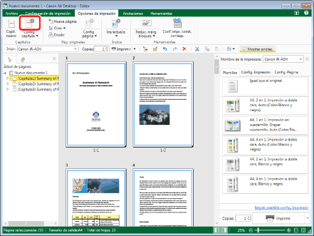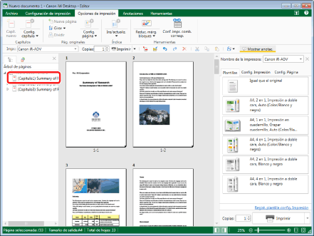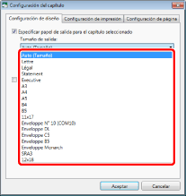 Si se ha establecido el tamaño del papel de salida en [Auto (Tamaño)] para todo el documento o para cada capítulo y no está marcada la casilla de verificación [Especificar el diseño de página para el capítulo seleccionado], si establece el diseño de página en algún valor que no sea [1 en 1] para todo el documento, el tamaño del papel de salida establecido para el capítulo pasa a ser no válido.