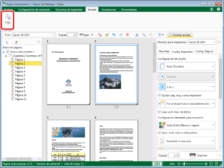 Las páginas copiadas también se pueden pegar en otro documento.