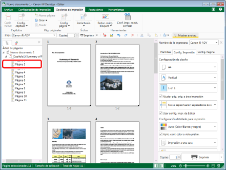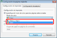 Si la impresora Canon seleccionada en [Impr.] no es compatible con la impresión en color, no se podrá especificar el modo de color por páginas.