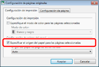 Para obtener más información sobre cómo configurar la Portada, la Contrap., el Papel de separación y las Hojas, consulte: