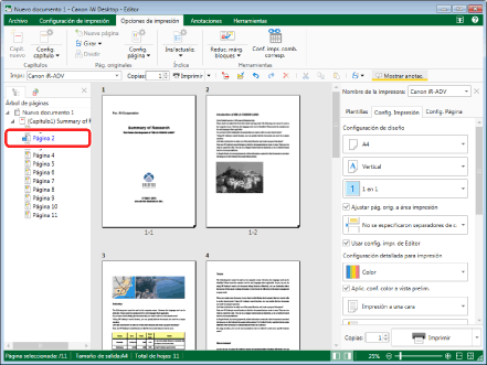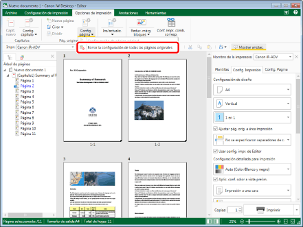 También puede hacer clic con el botón derecho en la página para cambiar los ajustes en la pestaña [Árbol de páginas] de la Ventana de navegación y seleccionar [Borrar configuraciones] en [Origen del papel para páginas originales].