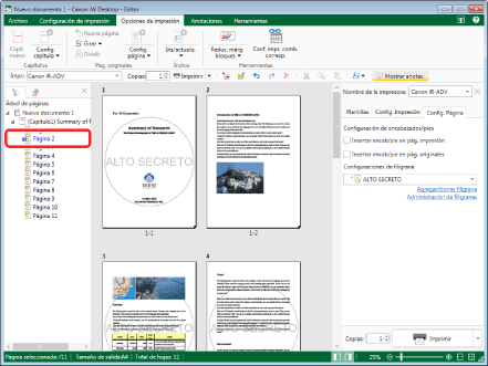 También puede hacer clic con el botón derecho en la página para cambiar los ajustes en la pestaña [Árbol de páginas] de la Ventana de navegación y desmarcar la casilla [No insertar filigranas en páginas seleccionadas] haciendo clic en ella.