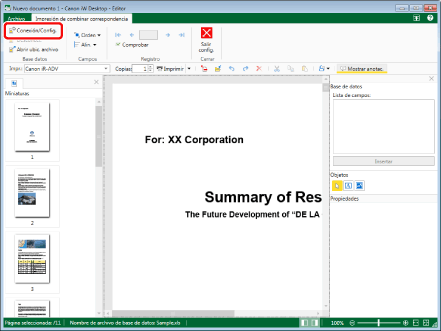 Al desconectar la conexión con la base de datos, los campos colocados dejan de previsualizarse. Podrán previsualizarse al volverla a conectar.