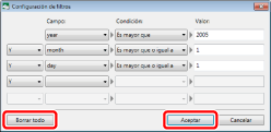 Al hacer clic en [Borrar todo], se borrarán las condiciones de filtrado.