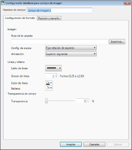 Si hace clic en esta opción, aparece el cuadro de diálogo [Configuración detallada para campos de imagen]. Puede editar los detalles del campo de imagen en el cuadro de diálogo [Configuración detallada para campos de imagen]. Para obtener más información, consulte: