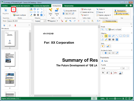 Para insertar un texto con marco, utilice [Cuadro de texto].