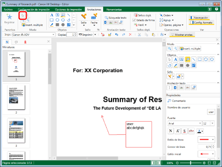 Aparece el nombre de usuario establecido en [Propiedades de anotación] en [Configuración del sistema]. Para obtener más información sobre el cambio de nombres de usuario, consulte: