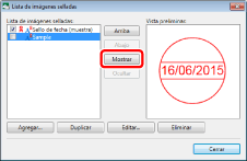 Puede visualizar la lista de imágenes con sello registrada en Desktop Editor. También puede cambiar entre mostrar y ocultar las imágenes con sello registradas.