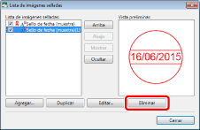 No se pueden borrar las imágenes con sello predeterminadas y registradas automáticamente durante la instalación.