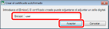 No se puede crear un certificado con firma automática si [Emisor] está en blanco o está totalmente formado por espacios.