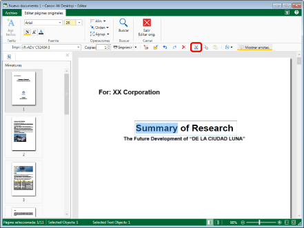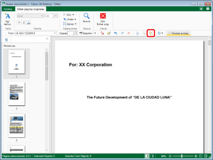 Los objetos cortados en el Modo de edición de páginas originales solo se pueden pegar en el documento desde el que se cortaron en el Modo de edición de páginas originales. Si los objetos cortados son objetos de texto, sus cadenas también se pueden pegar en documentos creados en otra aplicación. En este caso, se descarta la información de atributo de las cadenas.