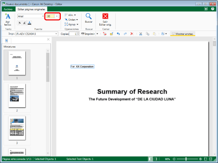 Los tamaños de fuente que se pueden configurar oscilan entre 3,0 y 72,0 puntos. Si introduce los valores directamente, introduzca solo un número decimal.