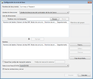 Si soltó varios documentos en [Fax] con la casilla [Enviar por fax un archivo a la vez sin combinar múltiples archivos] seleccionada, aparece el cuadro de diálogo [Configuración de envío de faxes] para el siguiente documento. En este caso, repita los pasos 5 a 11.