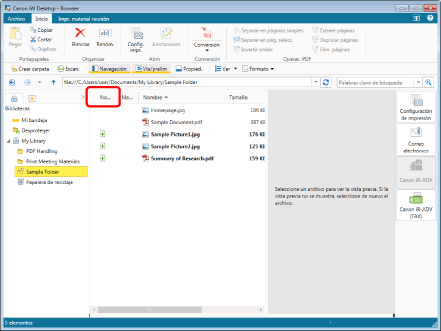 Haga clic en [No leído] en la línea del encabezado de la Ventana de visualización de la lista de archivos.