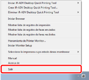 Para Windows 7, haga clic en el menú [Iniciar] > [Todos los programas] > [Canon iW] > [iW Desktop] > [iW Desktop Printer Monitor]