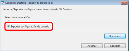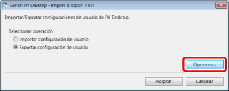 Al importar la configuración de usuario, puede elegir si conceder prioridad a la configuración del usuario del equipo destino o al contenido del archivo de configuración del usuario.