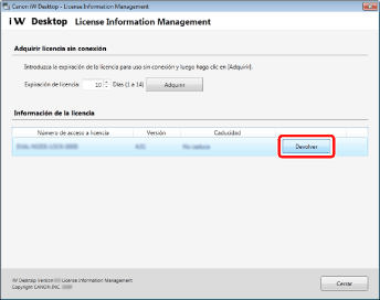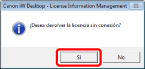 Para Windows 10, seleccione el menú [Inicio] > [Todas las aplicaciones] > [Canon iW] > [iW Desktop License Information Management].