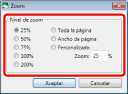 El cuadro de diálogo [Zoom] se cierra y aparece la página en la Ventana de trabajo con el factor de ampliación especificado.
