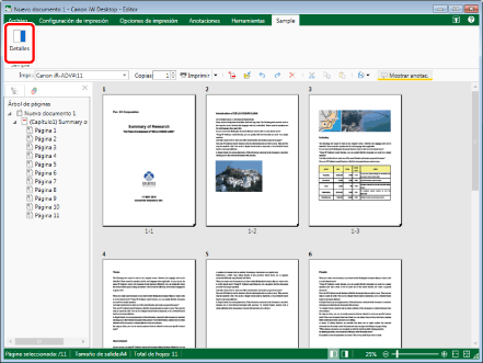 Al usar el Modo de impresión, también puede mostrar la Ventana Detalles haciendo clic en (Conf. detallada) en la cinta.