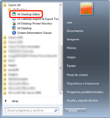 En Windows 10, seleccione el menú [Inicio] > [Todas las aplicaciones] > [Canon iW] > [iW Desktop Editor]. Se inicia Desktop Editor.