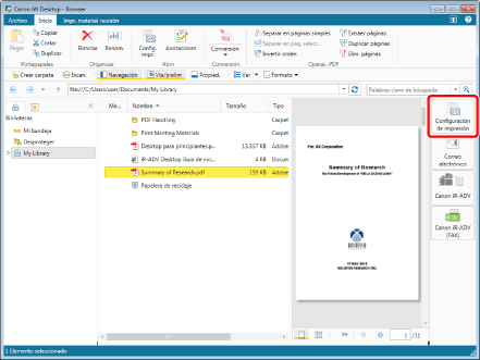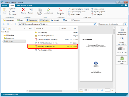 Si guarda un documento con la casilla de verificación [Guardar el documento original como Canon Desktop Document] seleccionada en la [Configuración del sistema], el documento original se guarda en el documento IWB.