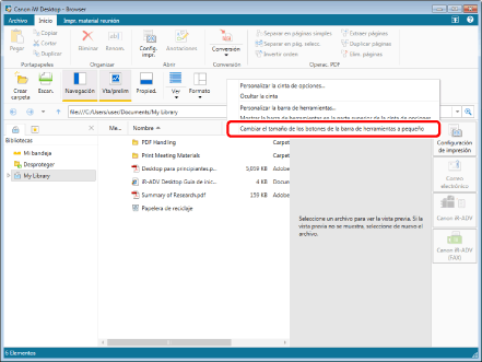 Haga clic con el botón derecho en un área de la cinta sin comandos o en la barra de herramientas y seleccione [Cambiar el tamaño de los botones de la barra de herramientas a pequeño].