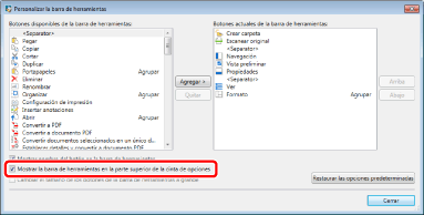 Seleccione la casilla de verificación [Mostrar la barra de herramientas en la parte superior de la cinta de opciones].