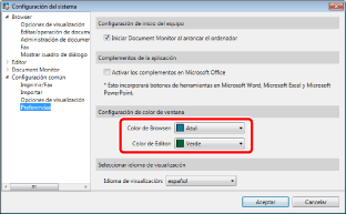 Seleccione el color para cambiar de la lista desplegable [Color de Browser] o [Color de Editor].