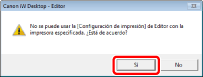 Menú [Archivo] > [Opción] > [Configuración del sistema] > [Editor] > [Opciones] > [Mostrar el mensaje de confirmación si no se muestra la vista preliminar al imprimir]