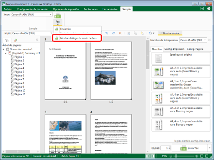 (Fax) en la cinta y seleccione [Mostrar diálogo de envío de fax].