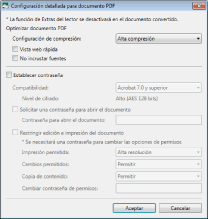 Seleccione los ajustes de compatibilidad de seguridad del documento PDF.