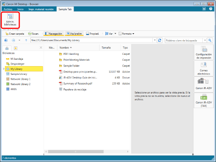 Esta operación también puede realizarse con los botones de herramienta de la barra de herramientas. Si no se muestran botones de herramienta en la barra de herramientas de Desktop Browser, consulte la siguiente información para visualizarlos.