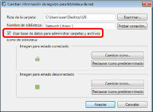 Si las operaciones de Desktop se vuelven inestables porque se registra un gran número de documentos en una Biblioteca de red, anule la selección para solucionar el problema. La velocidad de operación también puede mejorar porque la carga del ordenador es menor en comparación a cuando está seleccionada la opción. |