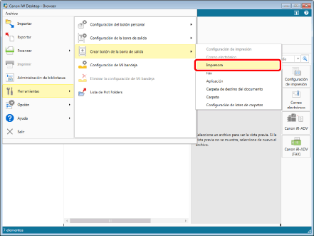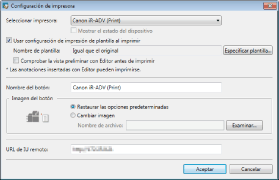 Con algunos tipos de impresora (como por ejemplo, las de red), es posible que no pueda registrar el botón de salida de la impresora arrastrándolo y soltándolo. En este caso, hágalo con los ajustes avanzados. Para más información sobre cómo configurar los ajustes avanzados, consulte: