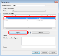 Para borrar una información añadida desde [Miembros actuales del grupo], seleccione el destino y después haga clic en [Eliminar].
