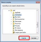 Asegúrese de especificar una carpeta para la cual tenga derecho de escritura (Windows) para la carpeta de destino de guardado de la libreta de direcciones, por ejemplo la carpeta [Documento].