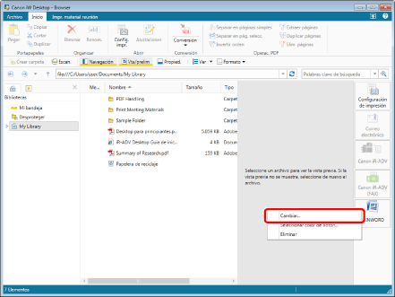 para un botón de salida de aplicación mostrado en la cinta o la barra de herramientas y seleccionando [Cambiar]. Si un botón de salida no se muestra en la cinta o la barra de herramientas, consulte lo siguiente para visualizarlo. |